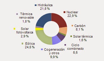 La eólica generó el 20,8% de la electricidad, la termosolar el 3,7% y la energía solar fotovoltaica el 4,5%.